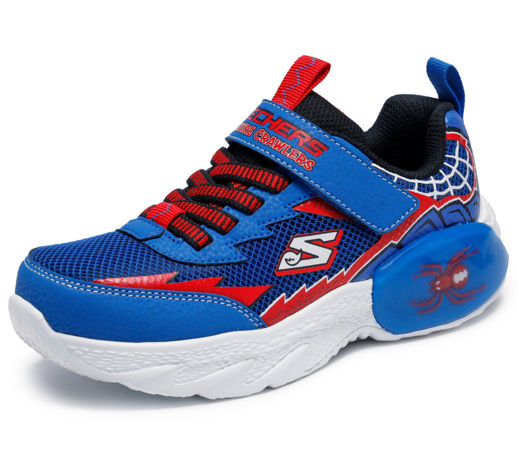 A dinamikus, pókemberre emlékeztető grafika, a piros-kék kontraszt és a talp oldalán megjelenő dekoratív elem igazán vagány megjelenést kölcsönöz ennek a Skechers fiú cipőnek. Tökéletes választás azoknak a gyerekeknek, akik szeretik a feltűnő, karakteres sportcipőket.