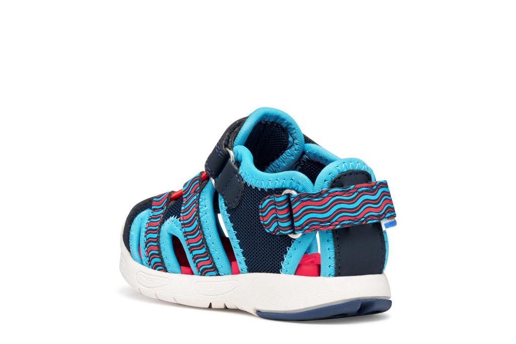 A stabil, mégis hajlékony kialakítás különösen fontos a fejlődésben lévő lábak számára, hiszen a bölcsis és ovis korosztály rengeteget mozog: fut, mászik, játszik, ugrál. Ez a GEOX fiú nyári szandál minden kalandban megbízható társ.
