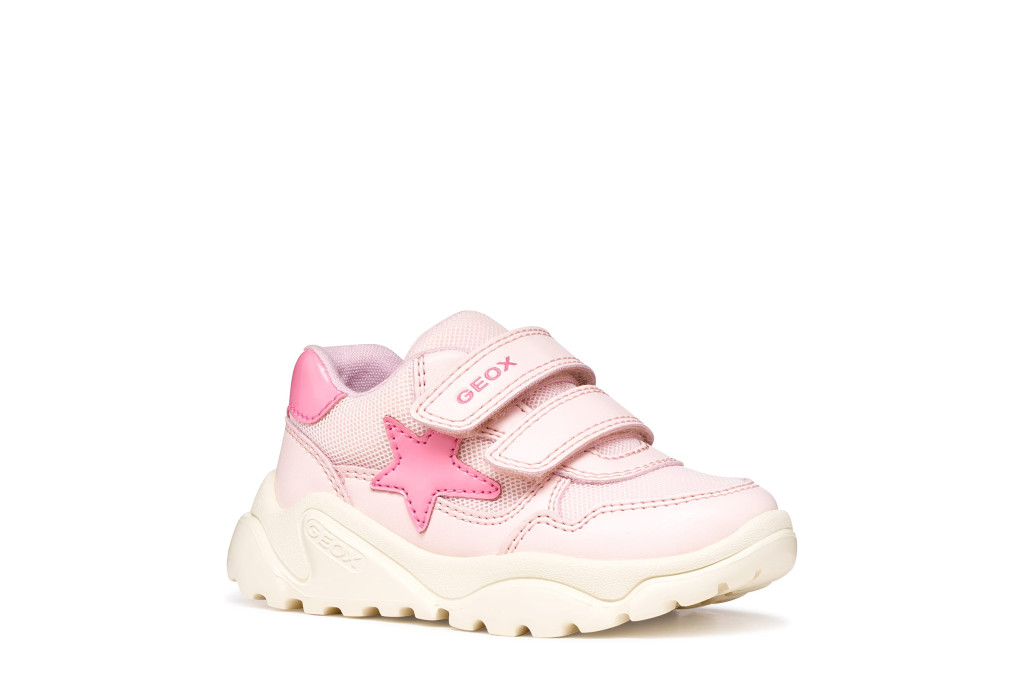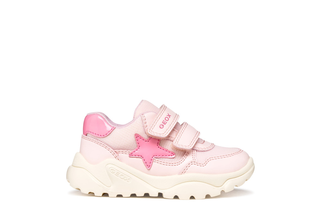 A GEOX B655QA-0BC14-C0808-22 lány sportcipő tökéletes választás bölcsis és ovis korú kislányok számára, akiknek fontos a kényelem és a vagány megjelenés. A rózsaszín–pink–fehér színösszeállítás és a feltűnő pink csillag igazán csajos, divatos megjelenést biztosít a mindennapokra.