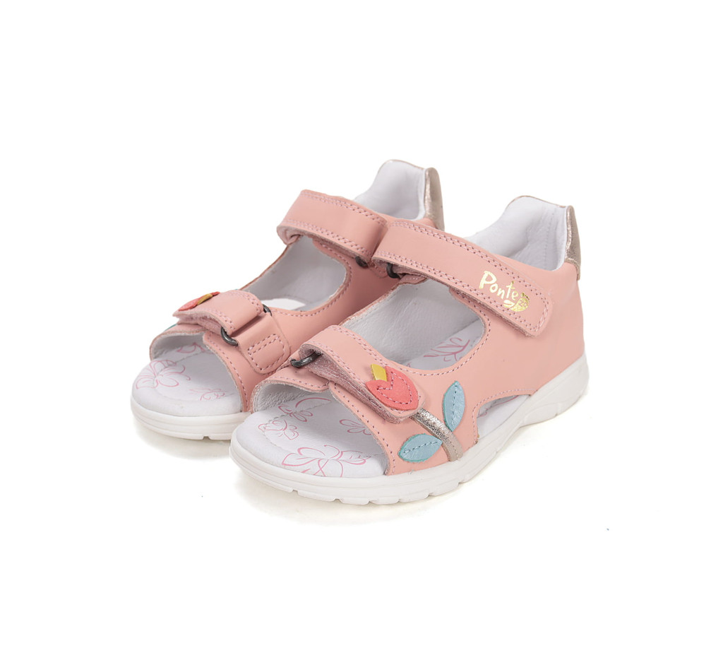 Ponte20 DA05-6-1595L szupinált lány szandál tökéletes választás ovis korú kislányok számára a nyári mindennapokra, valamint benti váltócipőként is használható, amennyiben szakember ajánlja. A finom rózsaszín árnyalat és a csodaszép virág minta igazán kedves, lányos megjelenést ad.