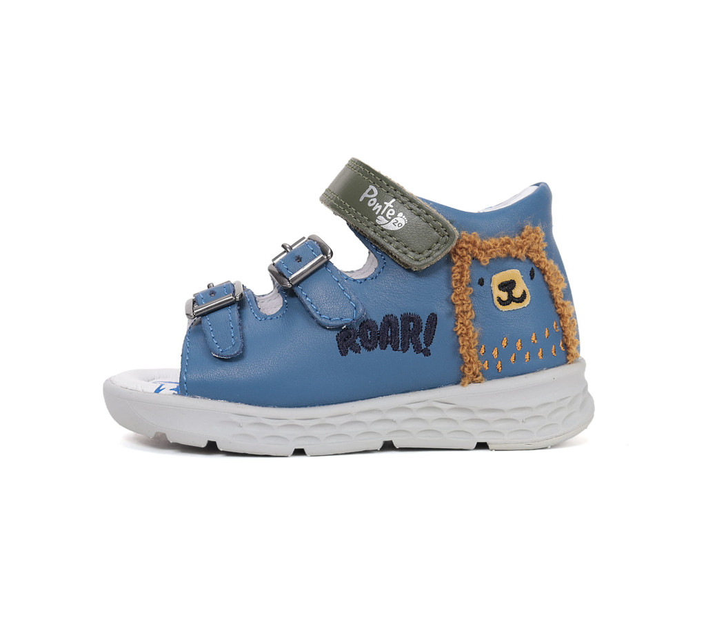 Ez a Ponte20 szandál kívül-belül valódi bőrből készült, ami természetes, jól szellőző környezetet biztosít a gyermek lábának. A puha bélés csökkenti a kidörzsölődés esélyét, míg a könnyű, szupinált talpszerkezet segíti a megfelelő testsúlyelosztást járás közben.