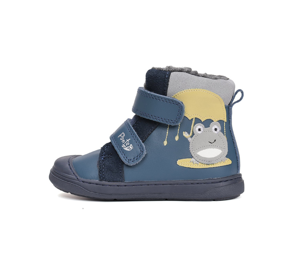 Cikkszám: DA07-5-2349A-25 Szín: kék, szürke Rögzítés: 2 db tépőzár Talp: szupinált, csúszásmentes gumitalp Anyag: kívül valódi bőr, belül bundás bélés Dizájn: esernyős béka minta Mérettartomány: 22–27
