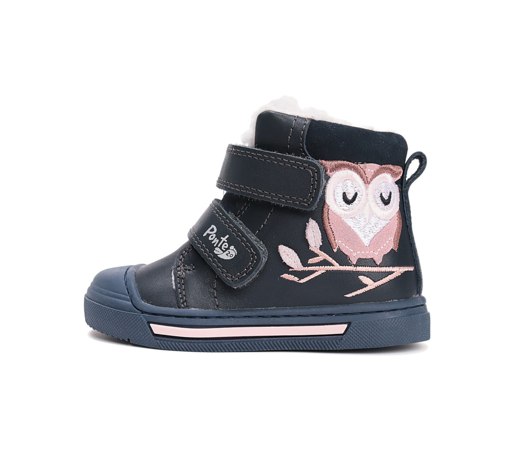 A csizma oldalán egy rózsaszín, ágon ülő bagoly minta díszíti a modellt, ami azonnal elnyeri a kislányok szívét. A kék és rózsaszín színkombináció elegáns, mégis játékos megjelenést kölcsönöz, amely jól illik a téli öltözethez. A bagoly motívum nemcsak aranyos, hanem egyedi, meseszerű karaktert ad a cipőnek – igazi Ponte20 különlegesség!