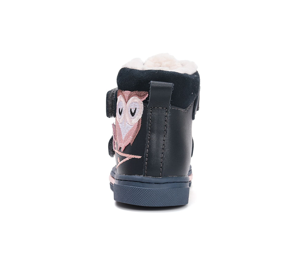 Cikkszám: DA07-5-2491B-26 Szín: kék, rózsaszín Rögzítés: 2 db tépőzár Talp: szupinált, csúszásmentes gumitalp Anyag: kívül valódi bőr, belül bundás bélés Dizájn: ágon ülő bagoly minta Mérettartomány: 22–27