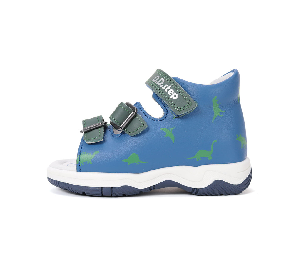 D.D.Step G103-61129BM fiú szandál ideális választás bölcsis és ovis korú fiúk számára, mindennapi használatra a nyári időszakban, valamint kényelmes váltócipőként is. A kék és zöld színvilágot apró dinoszaurusz minták teszik igazán vagánnyá és szerethetővé.