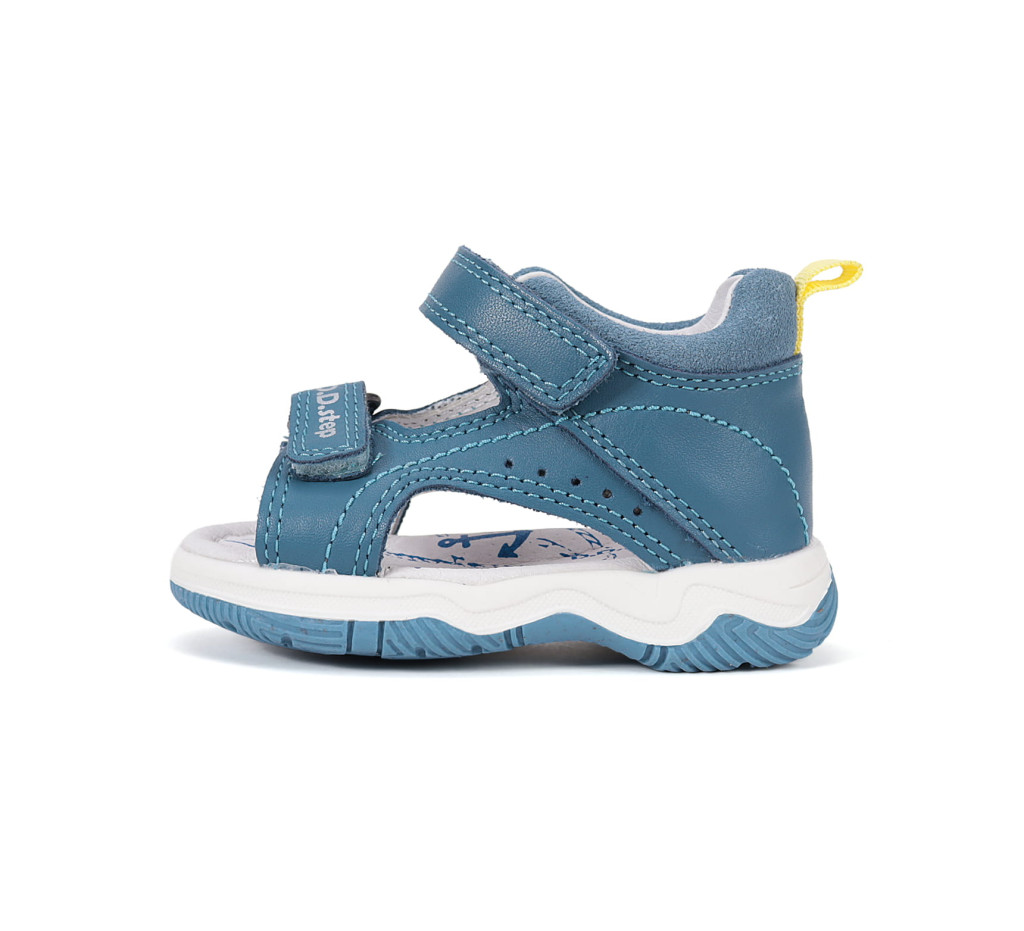 D.D.Step G103-61588A fiú szandál ideális választás bölcsis és ovis korú kisfiúk számára, akiknek fontos a kényelmes és praktikus nyári lábbeli. Az egyszínű kék, letisztult dizájnt sportos varrások és finom lyukacsos részletek teszik izgalmasabbá, miközben könnyen kombinálható bármilyen ruházattal.