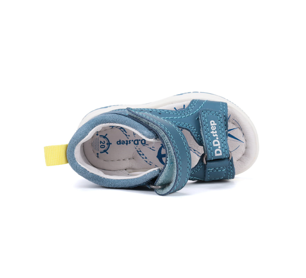 D.D.Step G103-61588AM fiú szandál ideális választás bölcsis és ovis korú fiúk számára a nyári mindennapokra, valamint váltócipőként is remekül használható közösségi környezetben. A kék színvilág letisztult megjelenést biztosít, amelyet sportos varrások és apró szellőző lyukacsok tesznek izgalmassá.