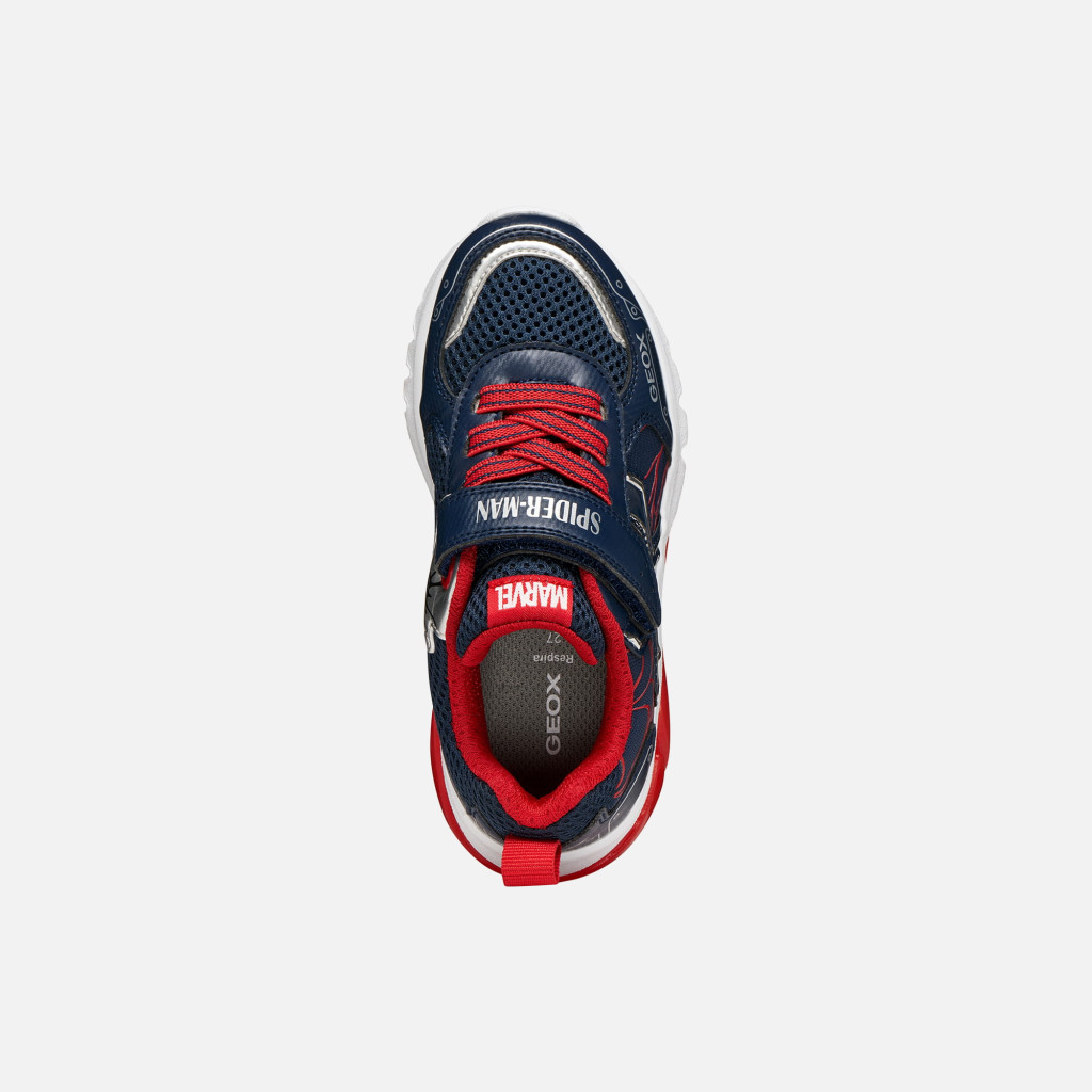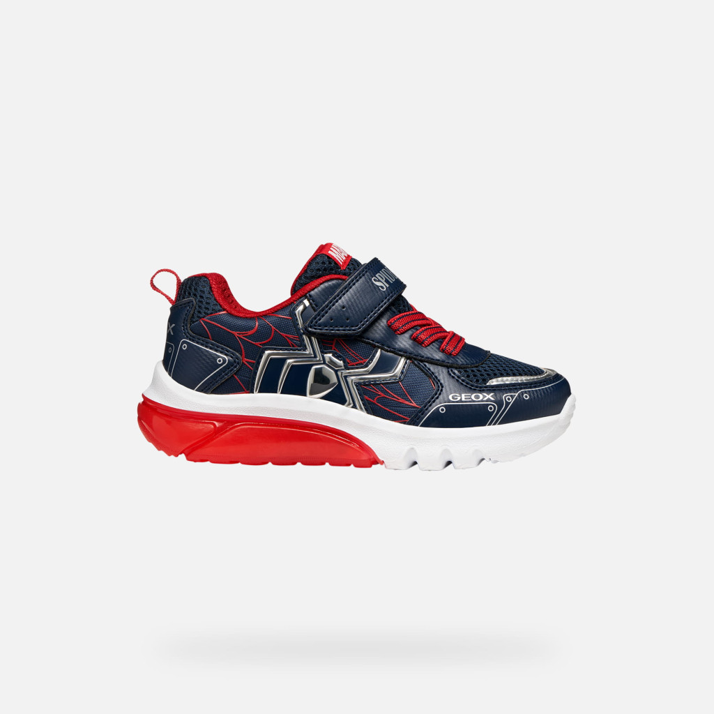 A GEOX J65LBC-014CE-C0735 villogós fiú sportcipő tökéletes választás azoknak a bölcsis és ovis korú fiúknak, akik imádják a szuperhősöket és a látványos, vagány cipőket. A sötétkék, piros és fehér színkombinációjú modell központi eleme az eszméletlen Pókember dizájn, amely garantáltan mosolyt csal minden kis rajongó arcára. A lépéseknél aktiválódó, ki- és bekapcsolható LED villogás még izgalmasabbá teszi a mindennapi viseletet.