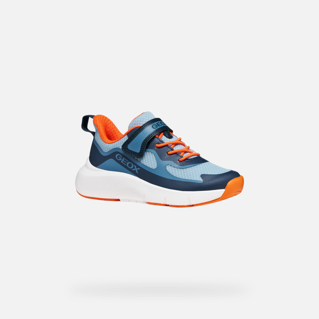 A GEOX J65P7F-01454-C0659-32 fiú sportcipő sportos, kényelmes és praktikus választás az aktív kisfiúk számára. A kék és narancssárga kontrasztos színkombináció modern, dinamikus megjelenést ad a cipőnek, amelyet a játékos hullámvonalas dizájn tesz még izgalmasabbá. A modell ideális bölcsis és ovis korú gyerekek számára, akiknek fontos a kényelmes, könnyű és strapabíró lábbeli a mindennapi mozgáshoz.