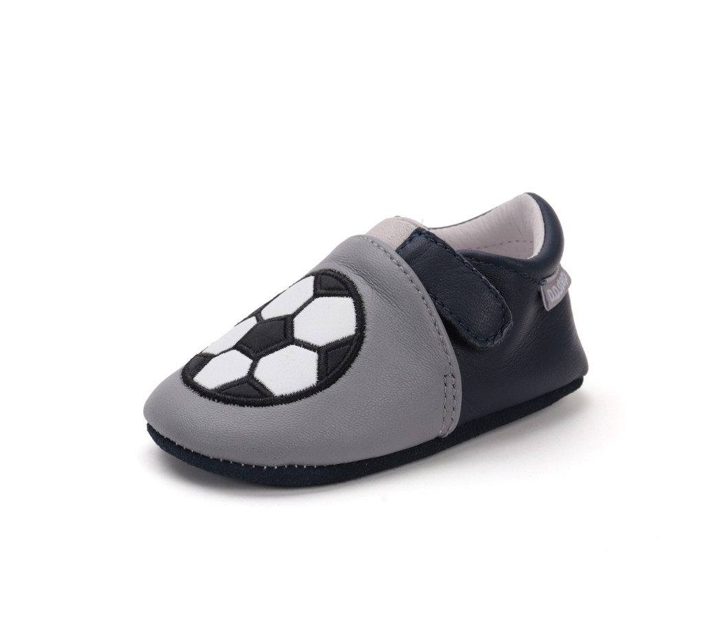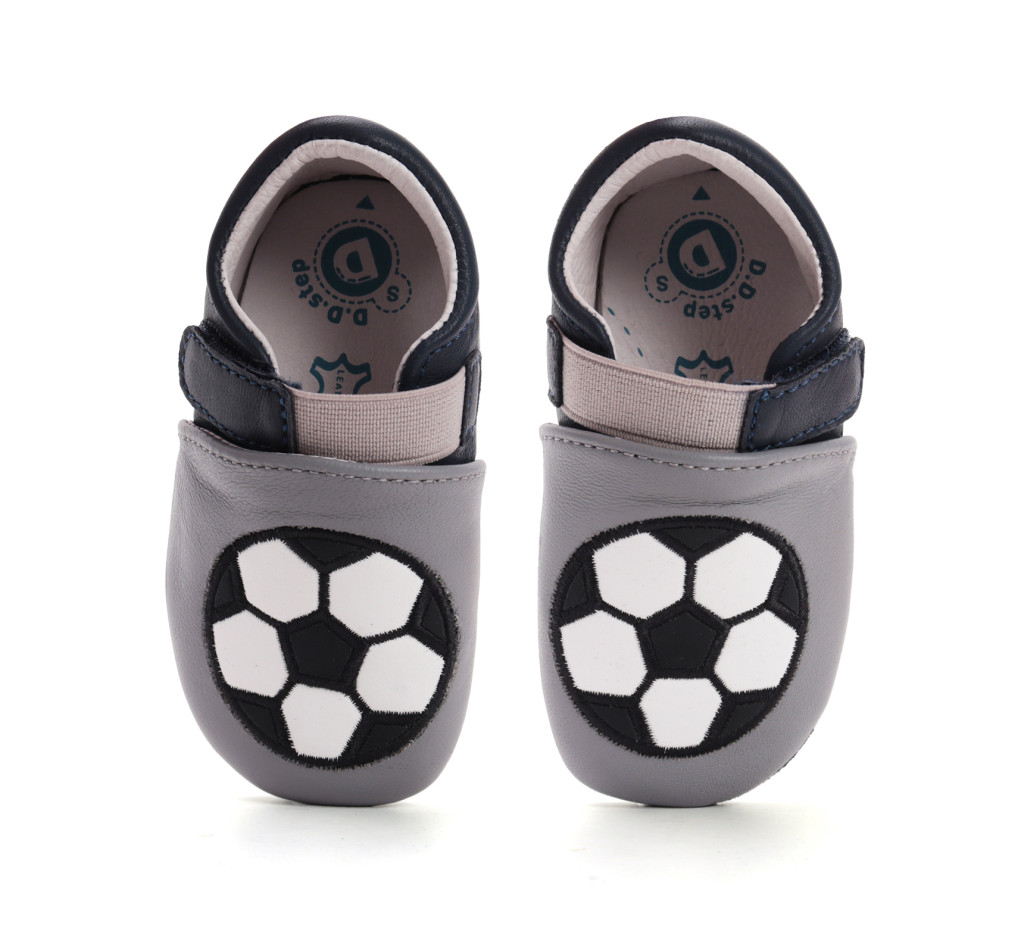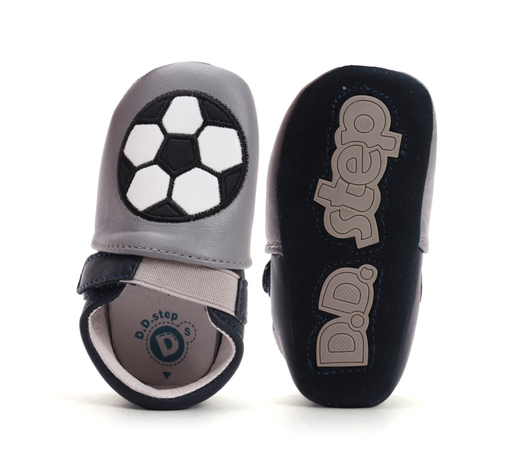 D.D.Step fiú puhatalpú cipő K1596-52572-S – S méret, szürke bőr felsőrész focilabda mintával, 1 tépőzáras rögzítéssel és puhatalpú kialakítással. Ideális választás fiú babáknak babakocsizáshoz vagy otthoni használatra.Mérettáblázat – az adott termék talpkódja alapján: