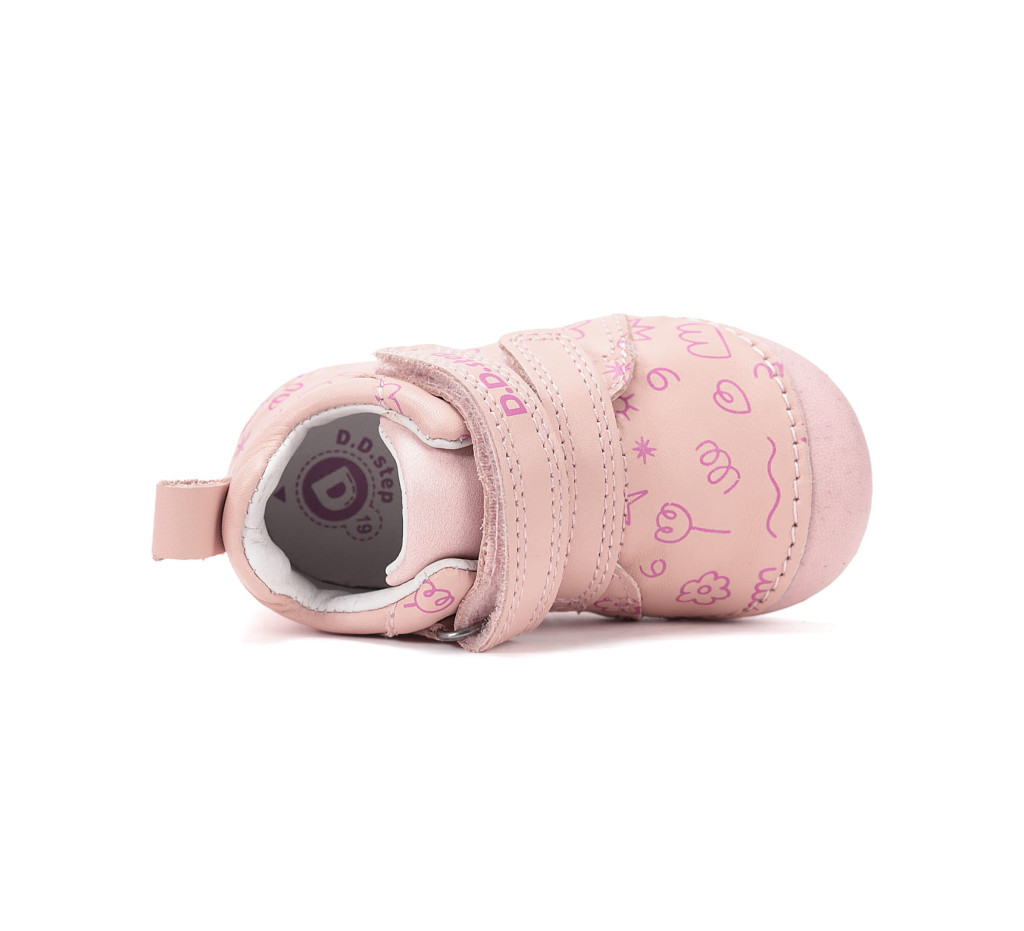 A D.D.Step S015-61675A első lépés lány cipő ideális választás azoknak a szülőknek, akik szeretnék a legnagyobb gondossággal támogatni gyermekük első lépéseit. Ez a bájos, rózsaszín árnyalatú modell kifejezetten a legkisebbek igényeihez lett tervezve, figyelembe véve a fejlődő láb anatómiai sajátosságait és a mindennapi használat kihívásait.