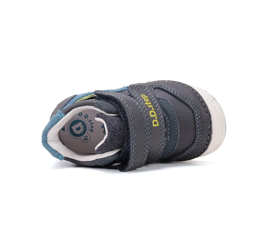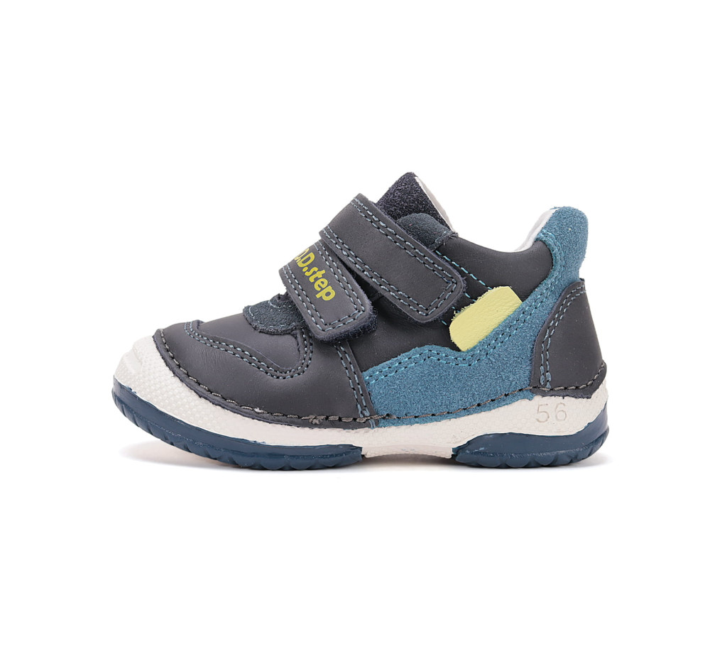 D.D.Step fiú cipő (S038-61324A) megbízható választás bölcsis és ovis korú fiúknak az aktív mindennapokra. A kosztűrő kék színű, kívül-belül bőrből készült cipő strapabíró talppal és megerősített orr résszel védi a kis lábakat játék közben.