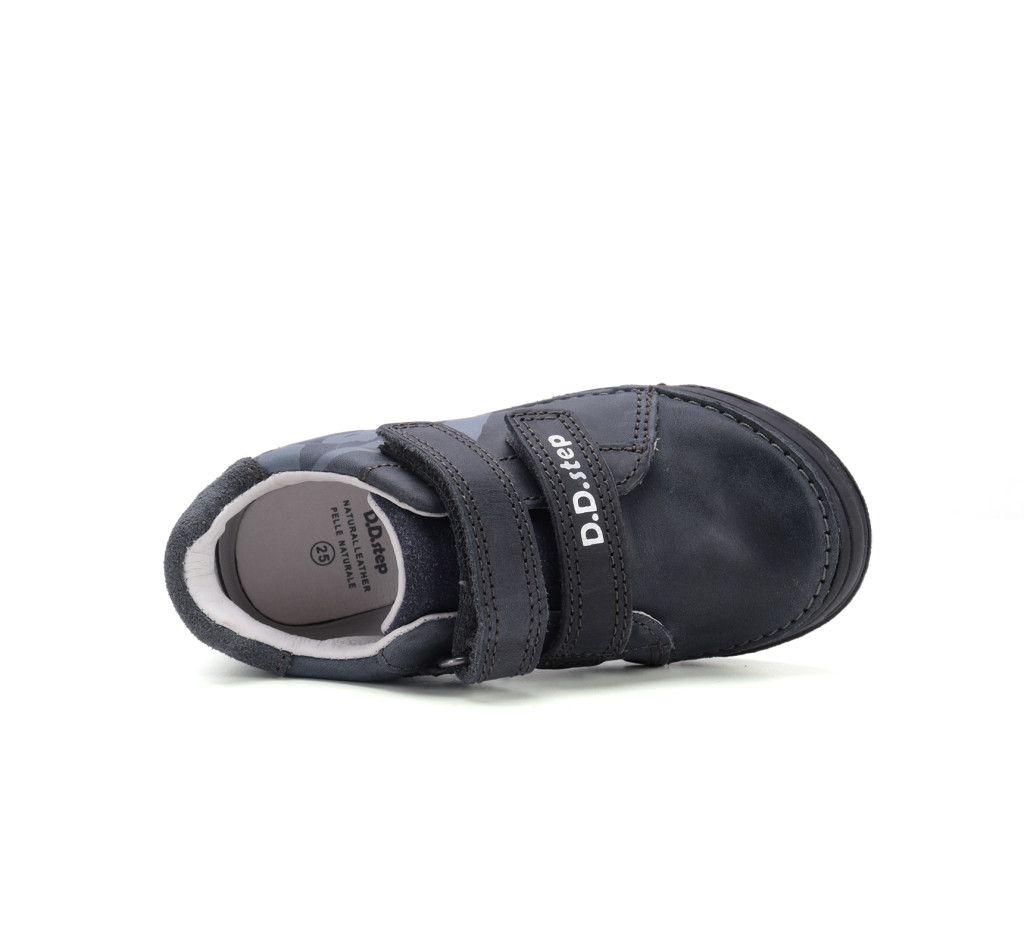 A D.D.Step S040-52938AM-30 fiú cipő vízlepergető bőr felsőrésszel, letisztult formavilággal készül. A praktikus sötétszürke színnek köszönhetően minden ruhadarabhoz illik, így ideális választás ovis korú fiúknak.