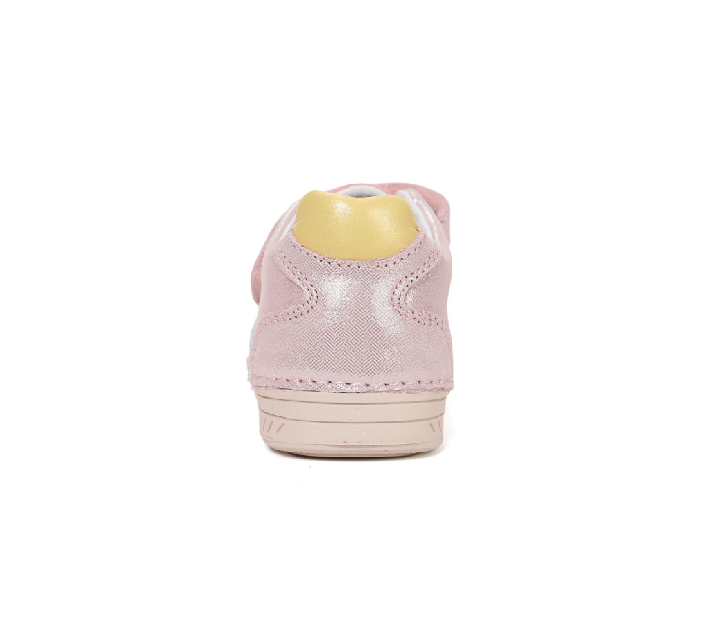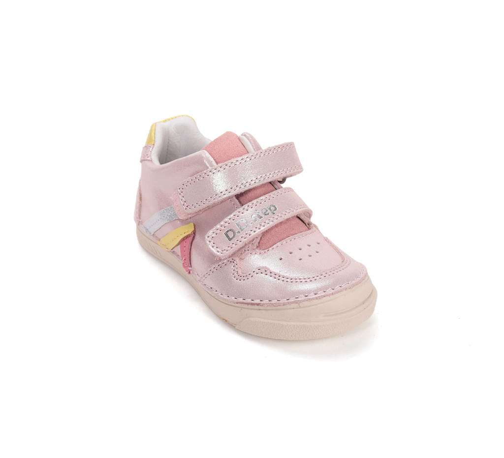 A D.D.Step S040-61252FM rosegold színű lány cipő tökéletes választás bölcsis és ovis korú kislányok számára az átmeneti időszak mindennapjaira. A kívül-belül bőr kialakítás kényelmes viseletet biztosít, míg a strapabíró, sportos talp aktív használat mellett is jól teljesít. A két tépőzár megkönnyíti a fel- és levételt, a csillogós anyagok és színes felvarrások pedig igazán különleges, kislányos megjelenést adnak a cipőnek.