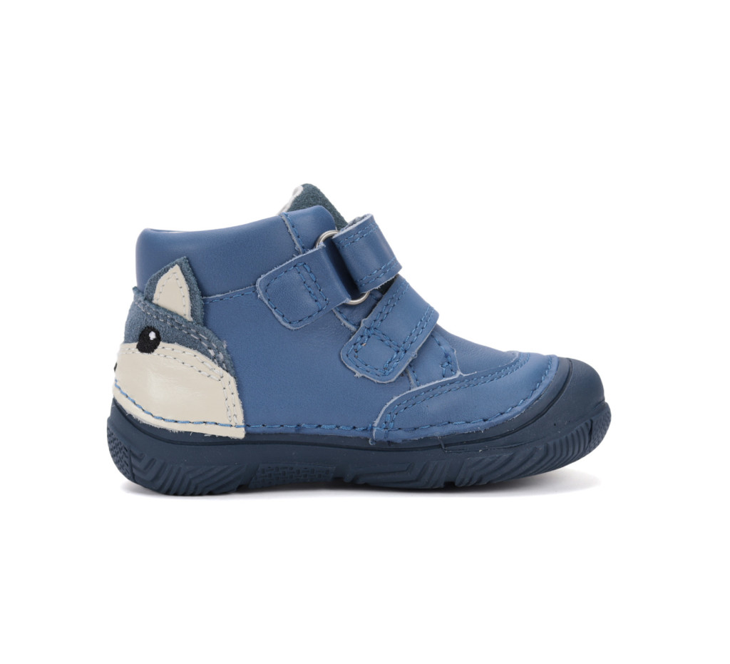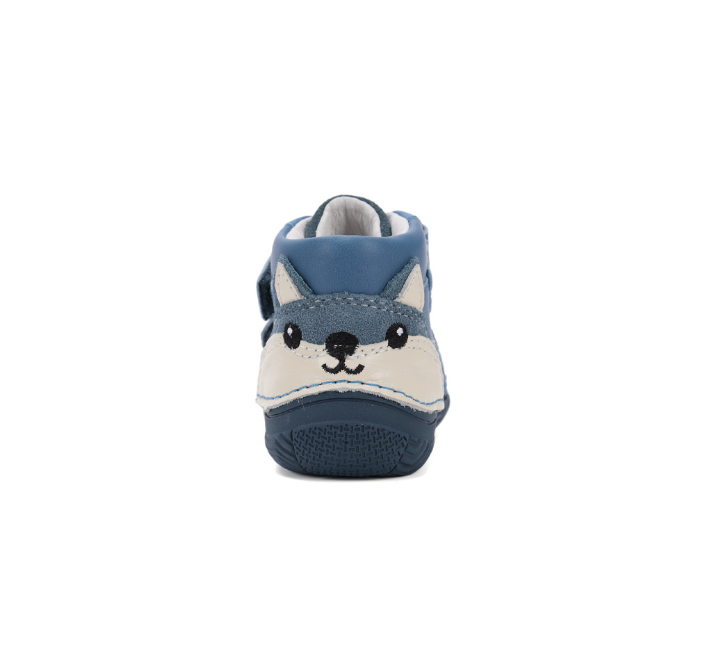 A D.D.Step S082-52202A-30 világoskék bőrcipő kedves mosómedvés díszítéssel a sarkon. Könnyed, de tartós kivitel a mindennapok igényeire hangolva.