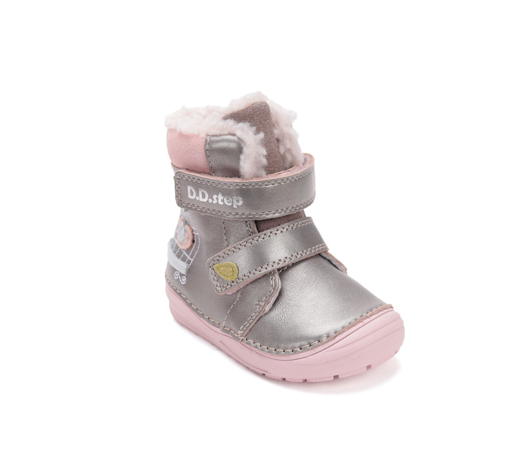 A D.D.Step W071-52381AM modell valódi bőr felsőrésszel készült, ami rugalmasságot és tartósságot biztosít. A bőr jól ellenáll a nedvességnek, ugyanakkor légáteresztő, így a láb nem izzad meg benne. A szürke szín elegáns és praktikus, míg a rózsaszín részletek játékosságot és finom, kislányos hangulatot visznek a megjelenésbe. Ez a kombináció bármely téli szettel tökéletesen harmonizál.