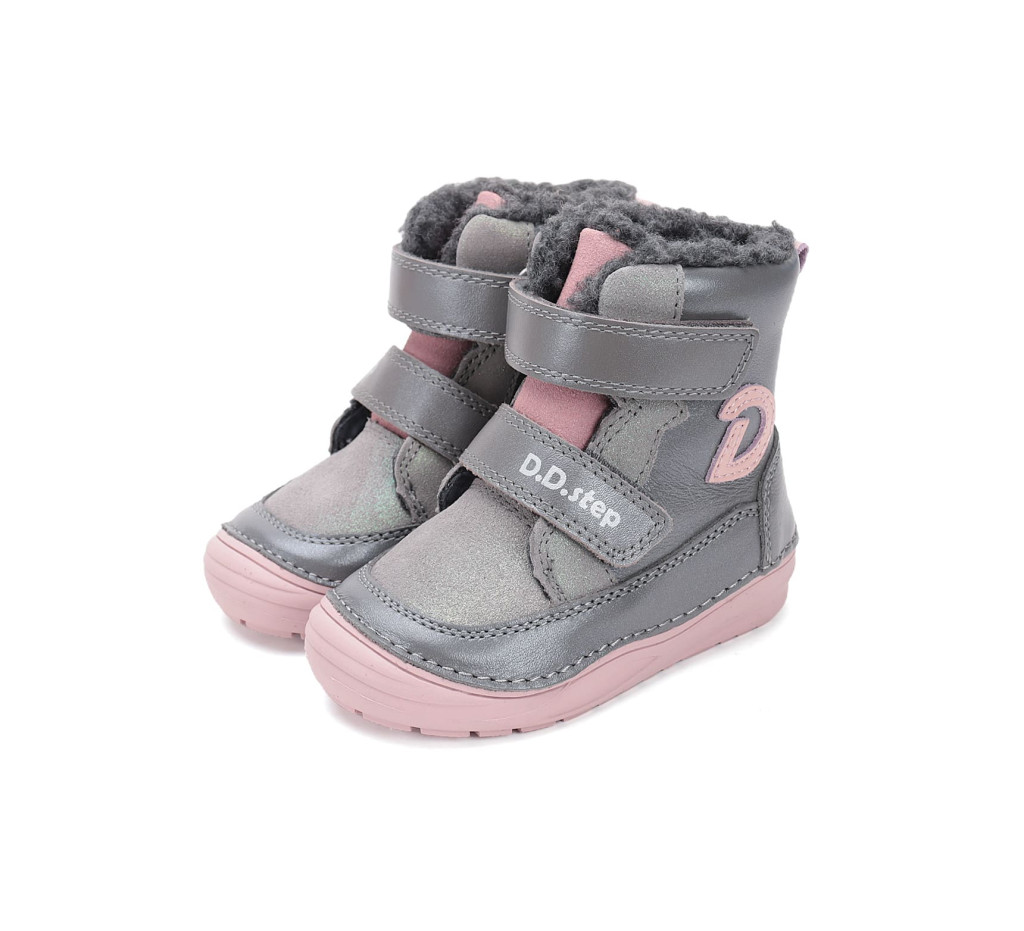 Cikkszám: W071-52664D Márka: D.D.Step Nem: lány Szín: szürke, rózsaszín Rögzítés: 2 db tépőzár Talp: csúszásmentes, rugalmas gumitalp Anyag: kívül bőr, belül bundás bélés Dizájn: vagány D betűs felvarrás, finom metálos árnyalatok Mérettartomány: 26–31 Ajánlott korosztály: ovis korú lányok Ajánlott használat: mindennapi téli viselet