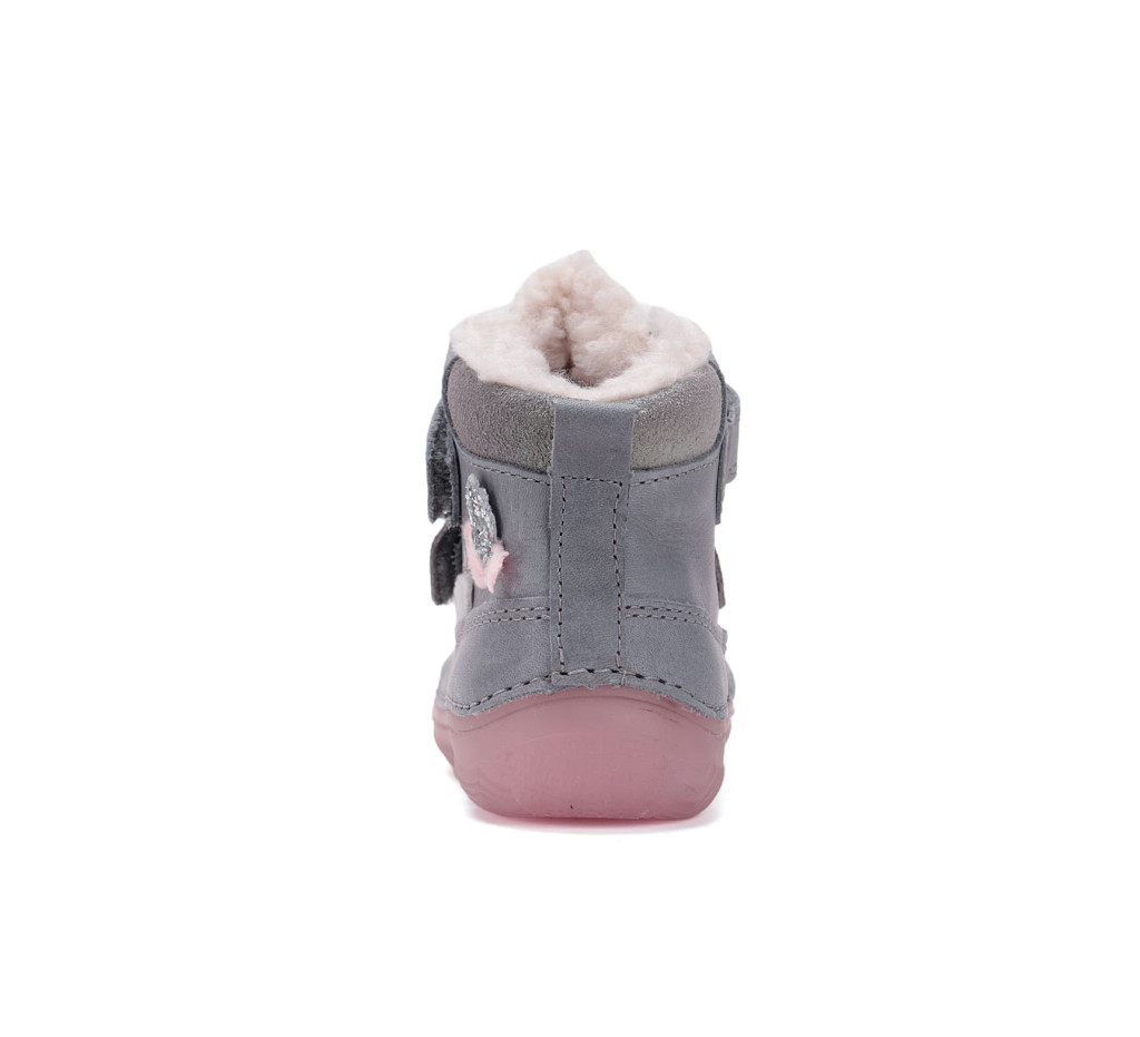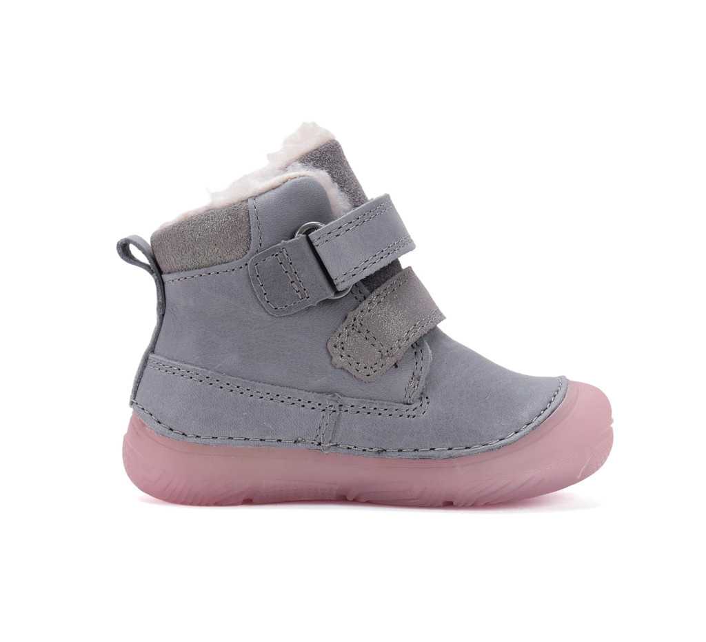 A cipő külseje prémium minőségű valódi bőrből készült, amely ellenáll a kopásnak és az időjárás viszontagságainak. A bőr természetes rugalmassága lehetővé teszi, hogy a csizma tökéletesen illeszkedjen a gyermek lábformájához, támogatva az egészséges fejlődést és a természetes mozgást. A szürke és rózsaszín kombináció pedig harmonikus, lányos és trendi megjelenést biztosít.