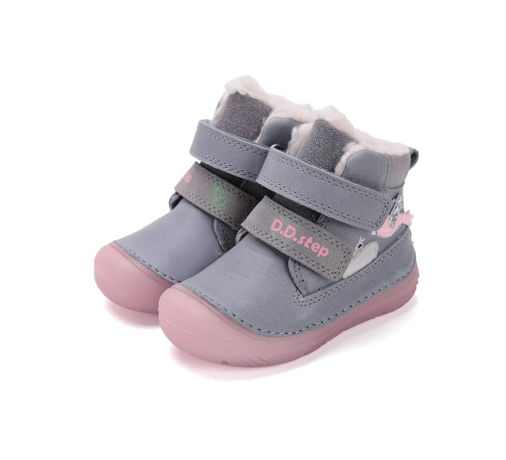 A cipő külseje minőségi, valódi bőrből készült, amely rugalmas, strapabíró és jól bírja a téli körülményeket. A szürke-rózsaszín színkombináció egyszerre modern és kislányos, így könnyen kombinálható kabátokkal és overálokkal is. A rózsaszín talp vidámságot visz a téli megjelenésbe, a csillogó madárka motívum pedig még különlegesebbé teszi ezt a modellt.