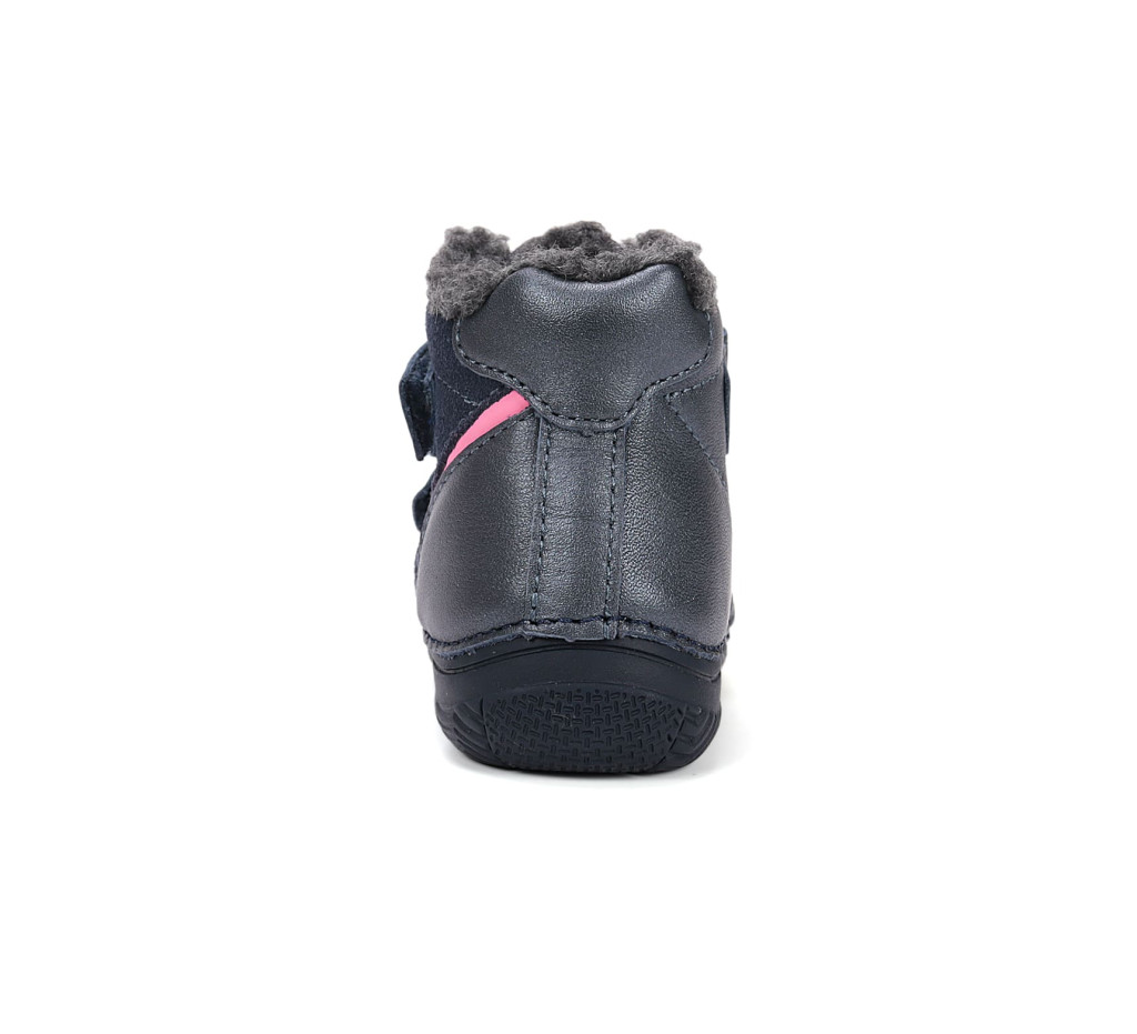 A cipő külső része kiváló minőségű, valódi bőrből készült, amely nemcsak puha és rugalmas, hanem rendkívül ellenálló is. A bőr természetes tulajdonságai révén vízlepergető és légáteresztő, így ideális választás a téli, nedvesebb időjárásra. A sötétkék alapszín elegáns és jól kombinálható, a rózsaszín részletek pedig kifejezetten kislányos bájt kölcsönöznek a modellnek.